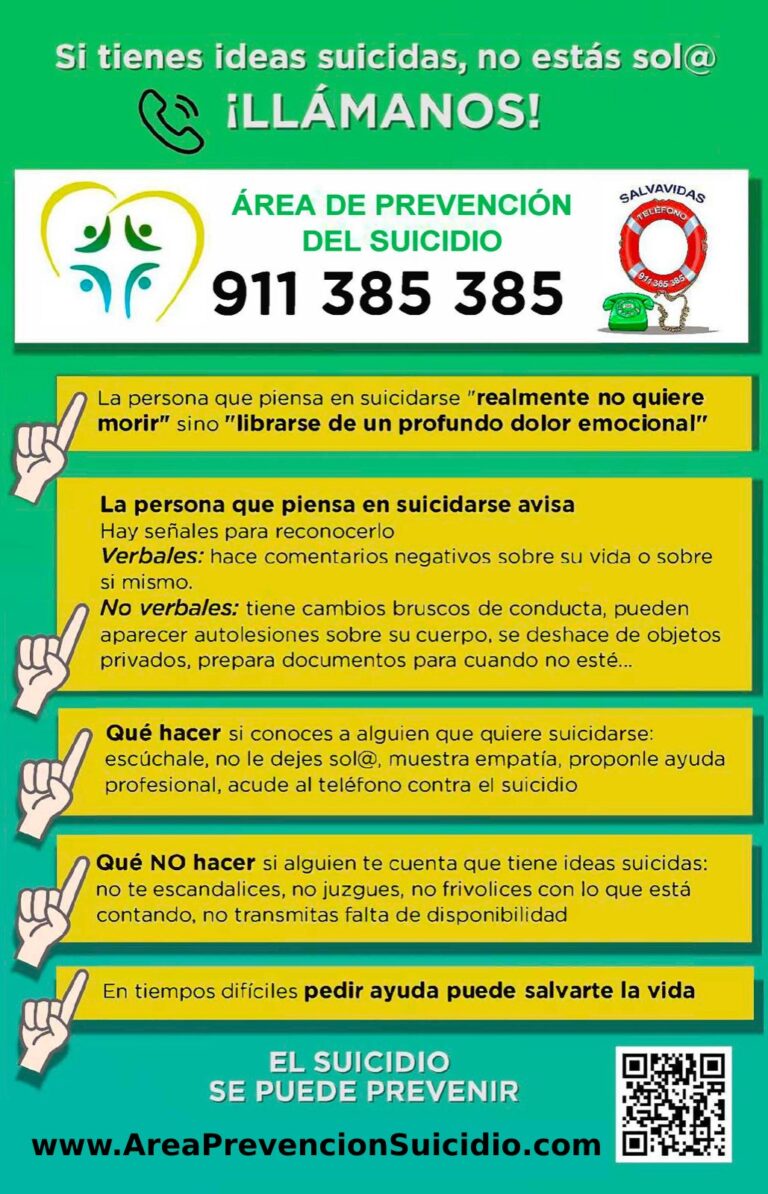 Os recuerdo que hay mas de 4000 suicidios al año, mas que accidentes de tráfico y sin embargo no hay casi apoyo y tampoco se habla por el falso miedo a publicitarlo entre los indecisos. (Oficiosamente esta cifra aumenta hasta mas de 5000 personas, 14 diarias) de todos los ramos de la sociedad, policias, políticos, enfermos, sanos, etc.